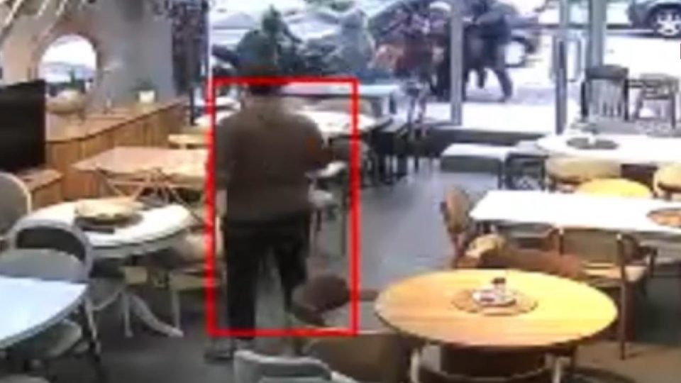 Otomobil restorandan çıkan müşterilerin arasına işte böyle daldı
