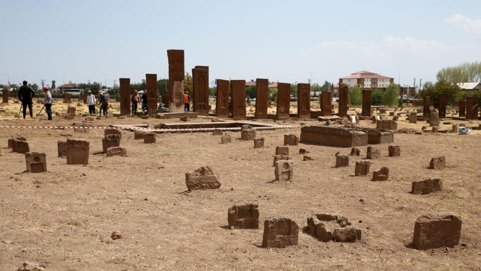Van Yüzüncü Yıl Üniversitesi (YYÜ) Edebiyat Fakültesi Sanat Tarihi Bölümü Dr. Öğr. Üyesi Mehmet Kulaz’ın başkanlığında mezarlıkta yürütülen kazılarda mezarlar gün yüzüne çıkarılıyor.