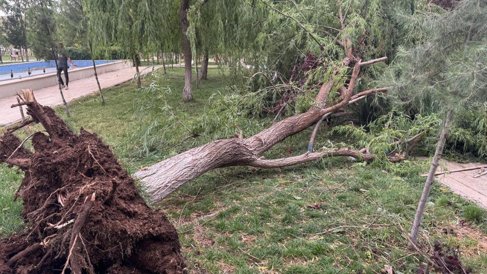 İtfaiye ve belediyenin diğer ekiplerinin devrilen ağaç ve uçan çatılara yönelik müdahalesi sürüyor.