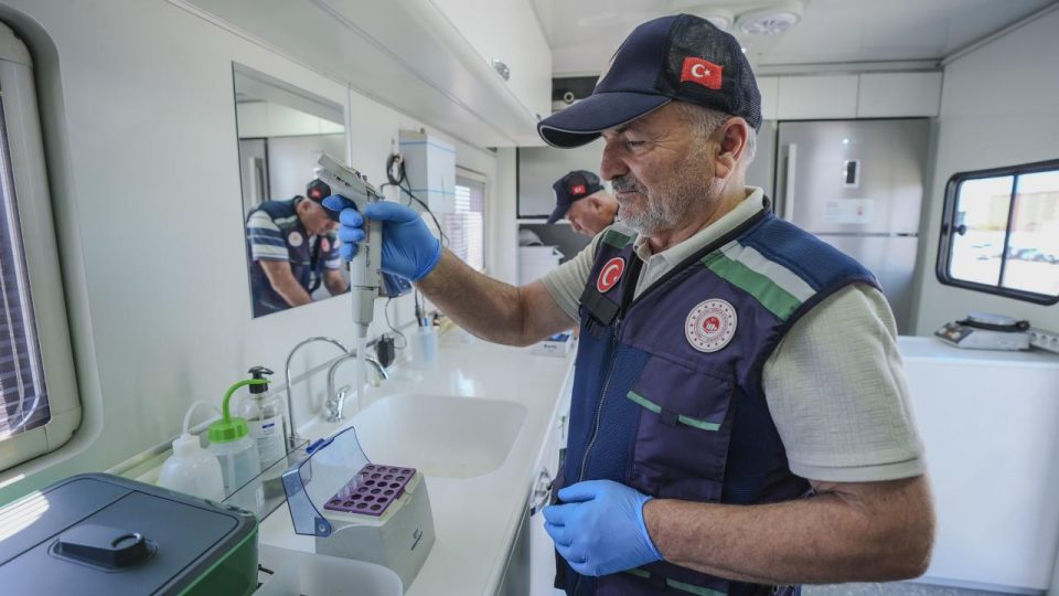 Açıklamanın ardından ekiplerce alınan numuneler mobil su ve atık su analiz laboratuvarında incelendi.