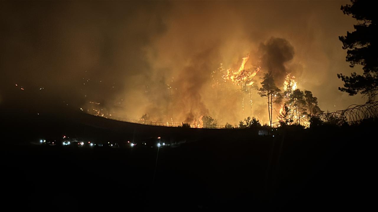 Yayladağı sınır hattında etkili olan yangını söndürmek için Türk ekiplerinin aralıksız müdahalesi sürüyor.