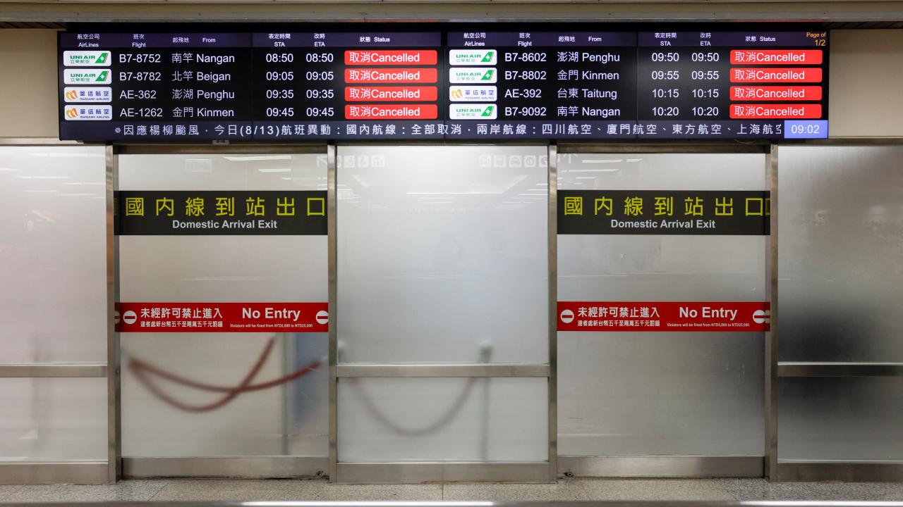 Tayvan genelinde bugün yapılacak tüm iç hat uçuşları, adanın güneydoğu kıyılarına doğru hızla ilerleyen Podul Tayfunu nedeniyle iptal edildi.