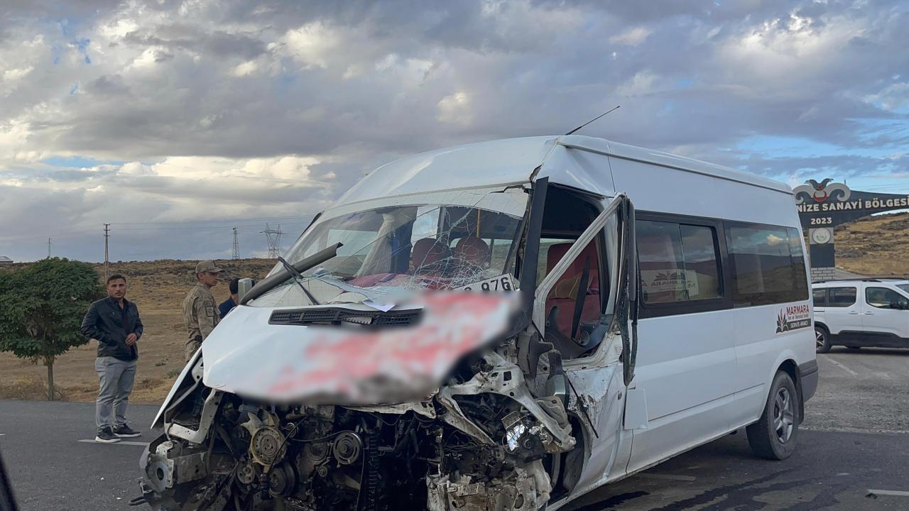 Erciş-Van kara yolunun Organize Sanayi Bölgesi Kavşağı’nda tır ile öğrenci servisi çarpıştı.